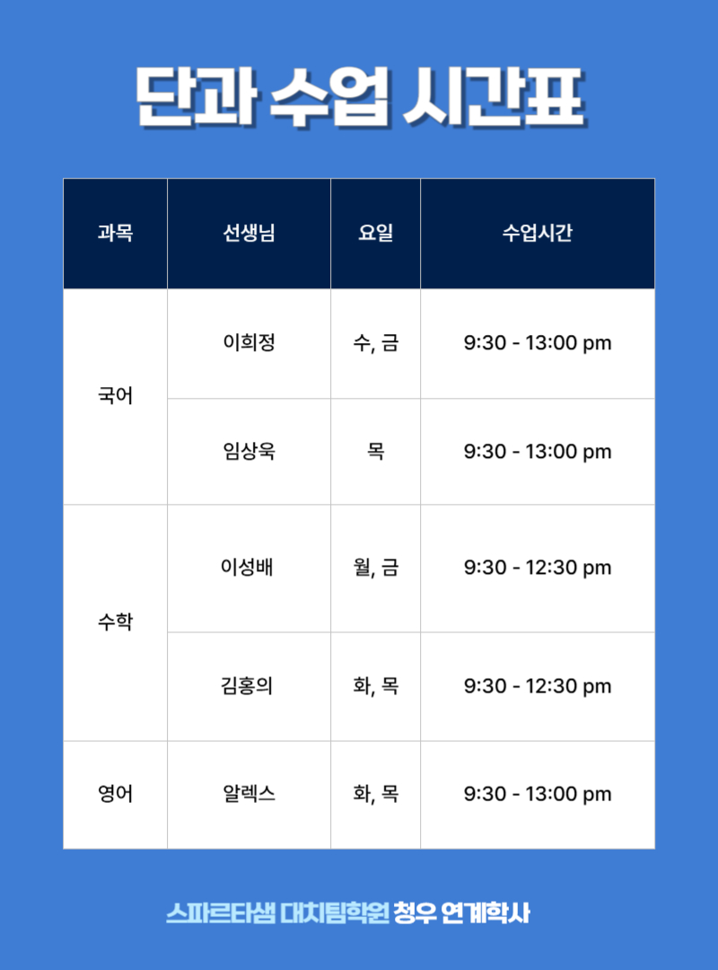 학사 연계형 스파르타샘 대치팀학원에 방문해 주셔서 감사합니다.
