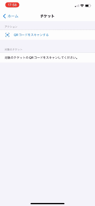 表示されたQRコードを管理者アプリで ログイン > 操作[チケット] > [QRコードをスキャンする] から読み取る。