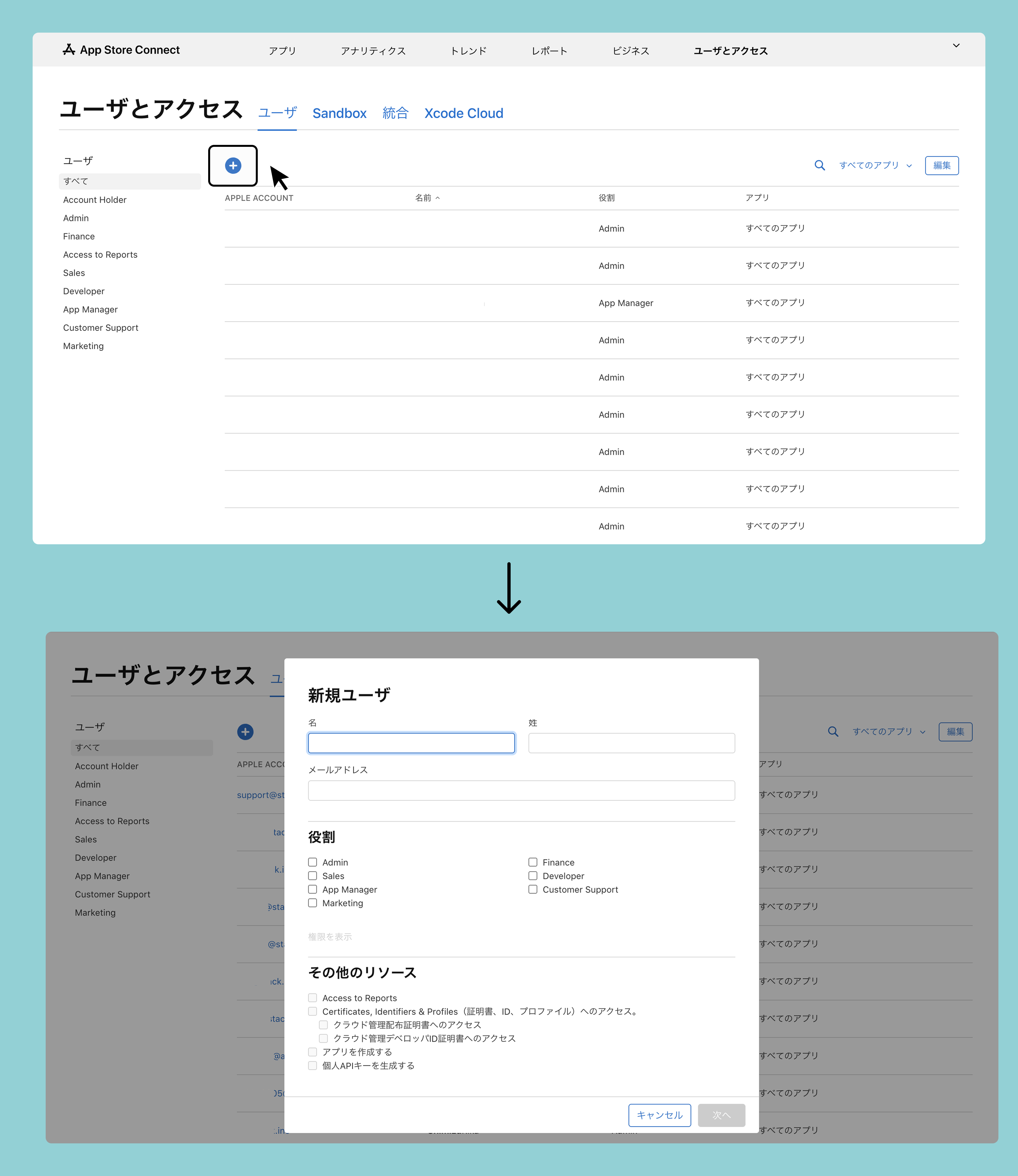 AppifyのメンバーがあなたのApp Store Connectのページにアクセスできるように、Appifyをメンバーに追加します。