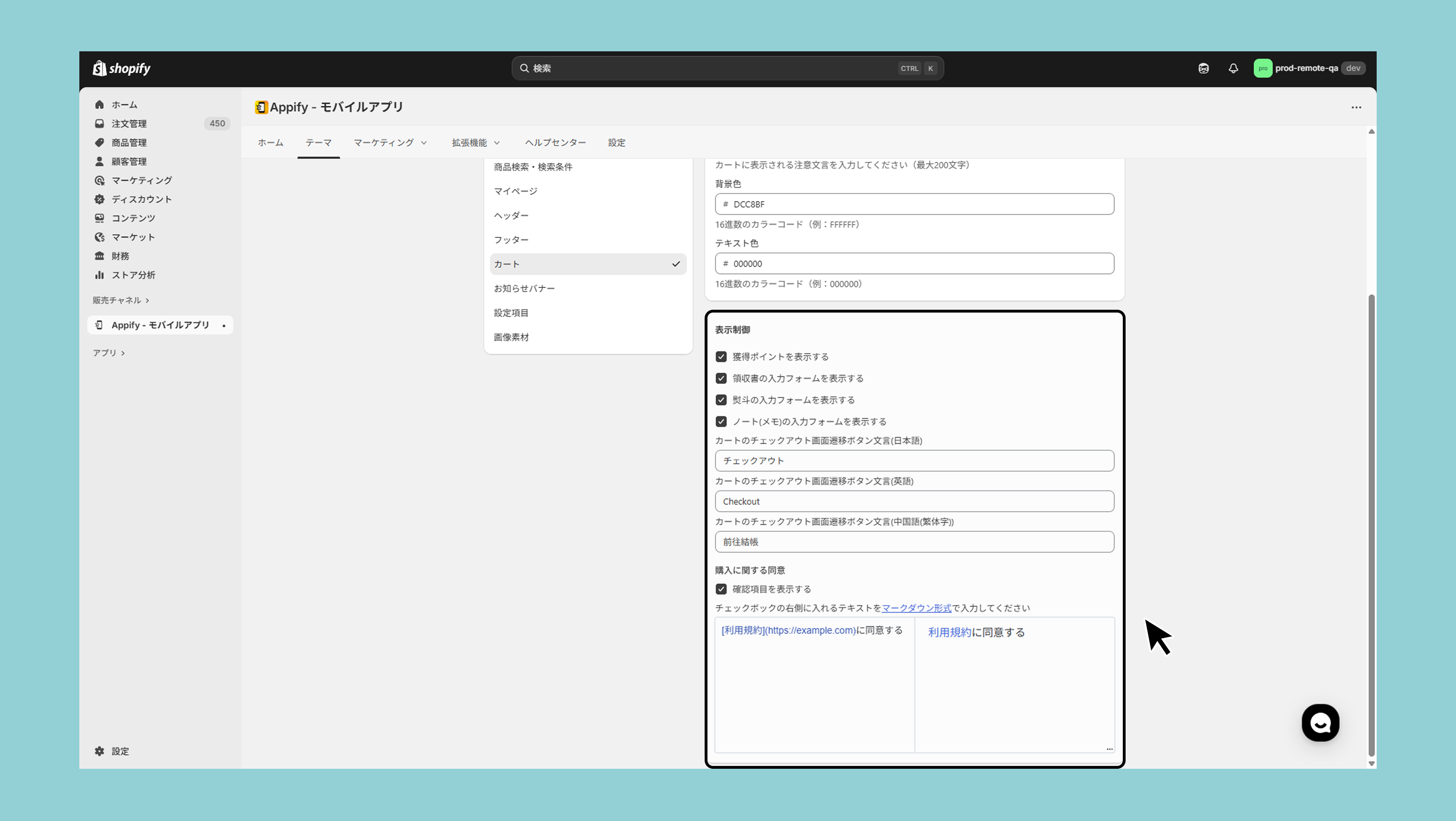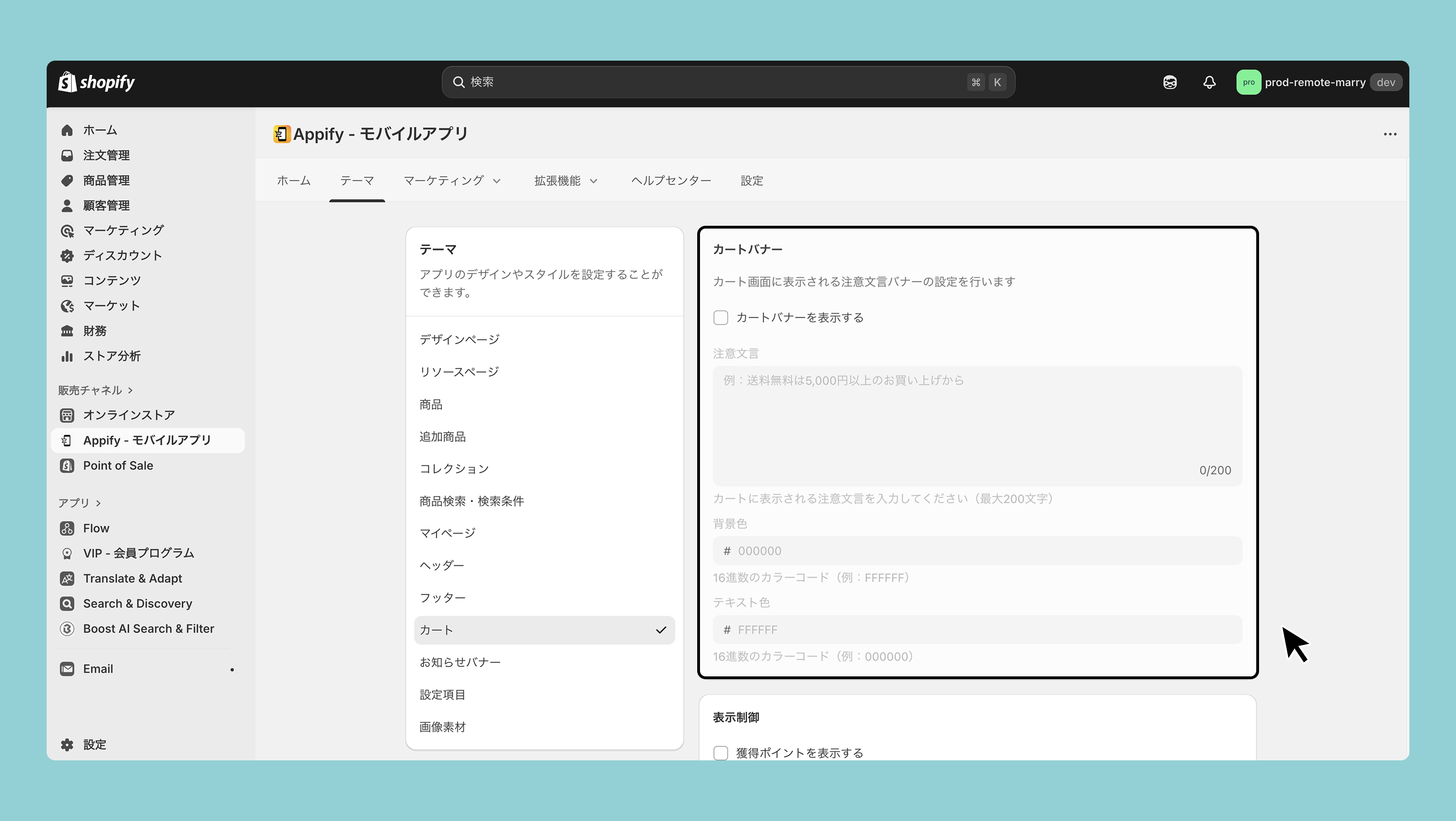 モバイルアプリ管理画面>テーマ>カート から設定できます。