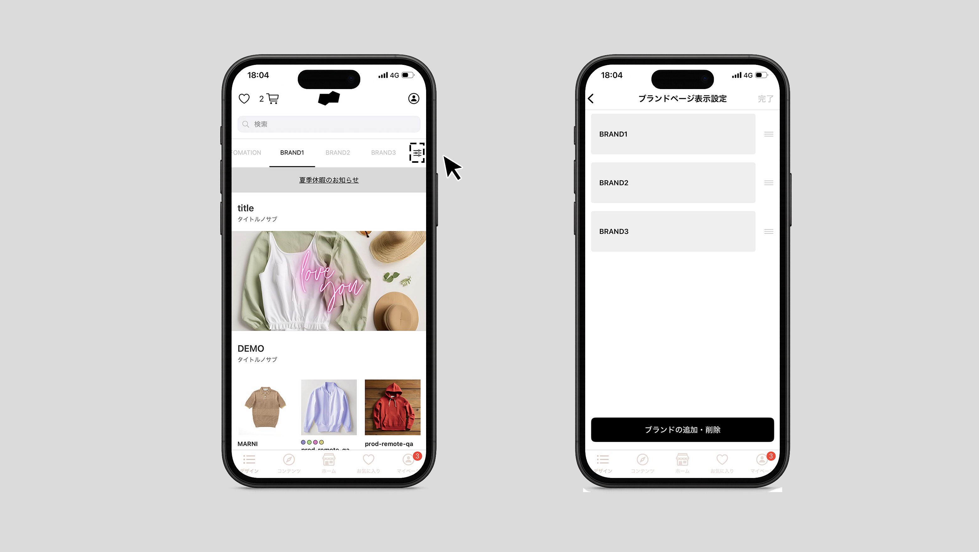 複数ブランドを取り扱っている場合ユーザーのお気に入りのブランドをファーストビューで表示できるようになる
