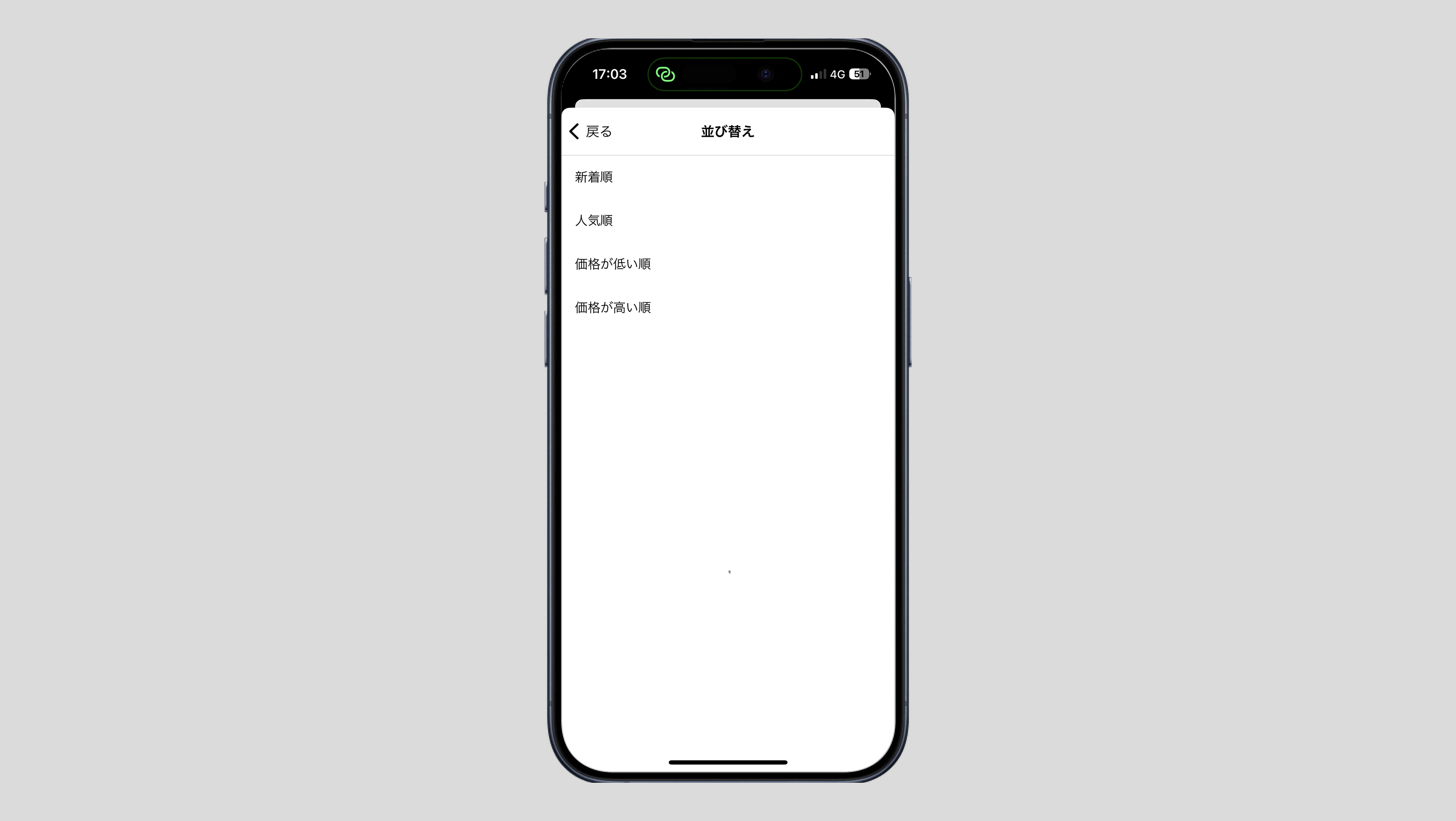 並び替えは新着順・人気順・価格の低い順・価格の高い順の4種類があります。