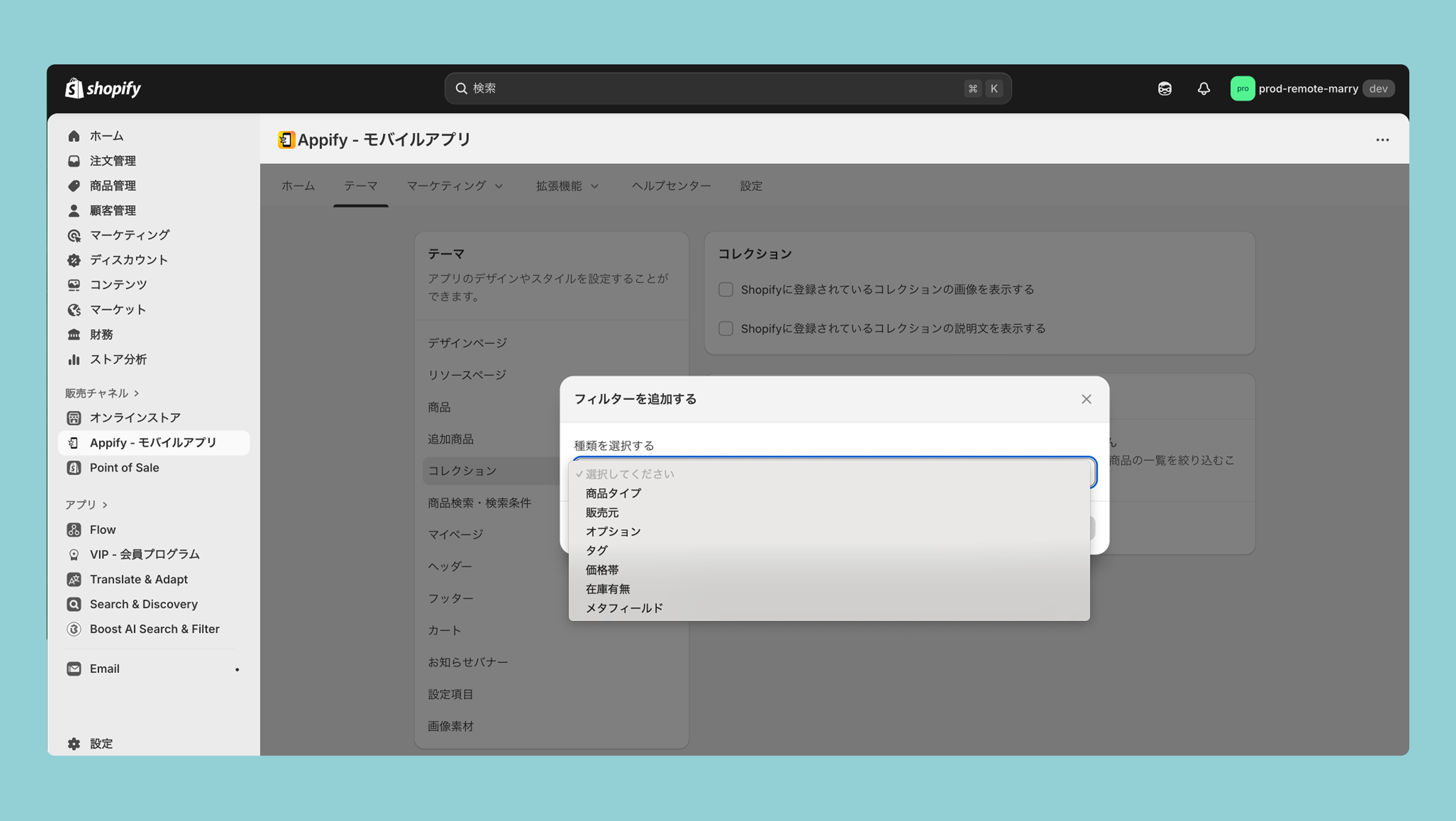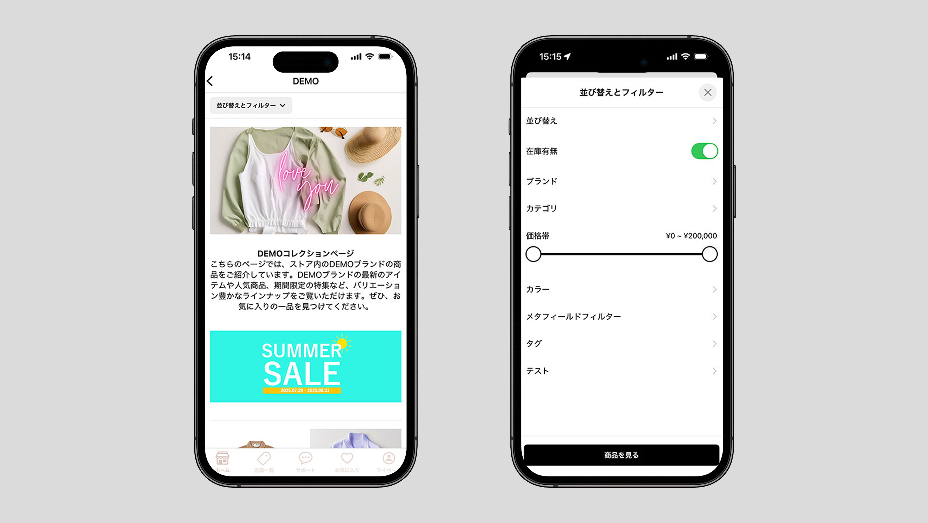 これにより、コレクション内に表示される商品の一覧を並べ替えたり、商品を絞り込むことが可能になります。