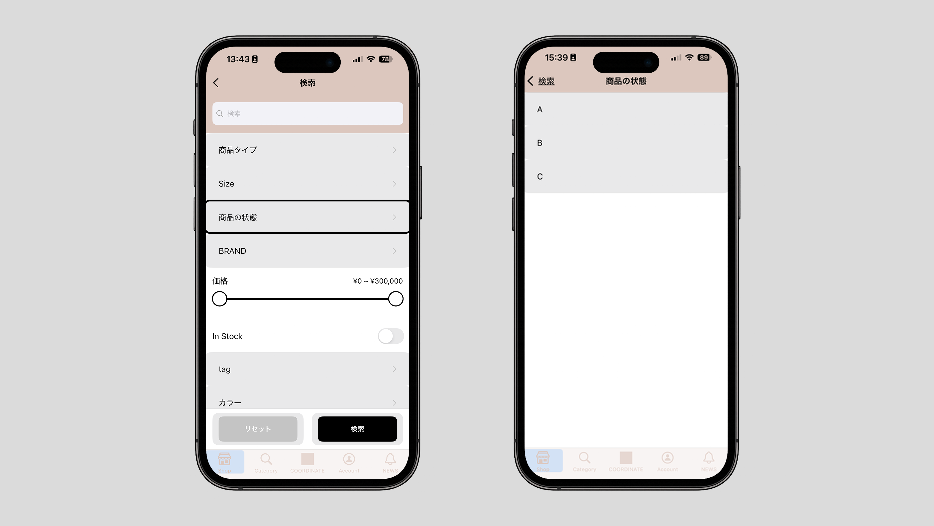 Appify > テーマ > 商品検索・検索条件 > 検索条件を設定する > フィルターを追加する