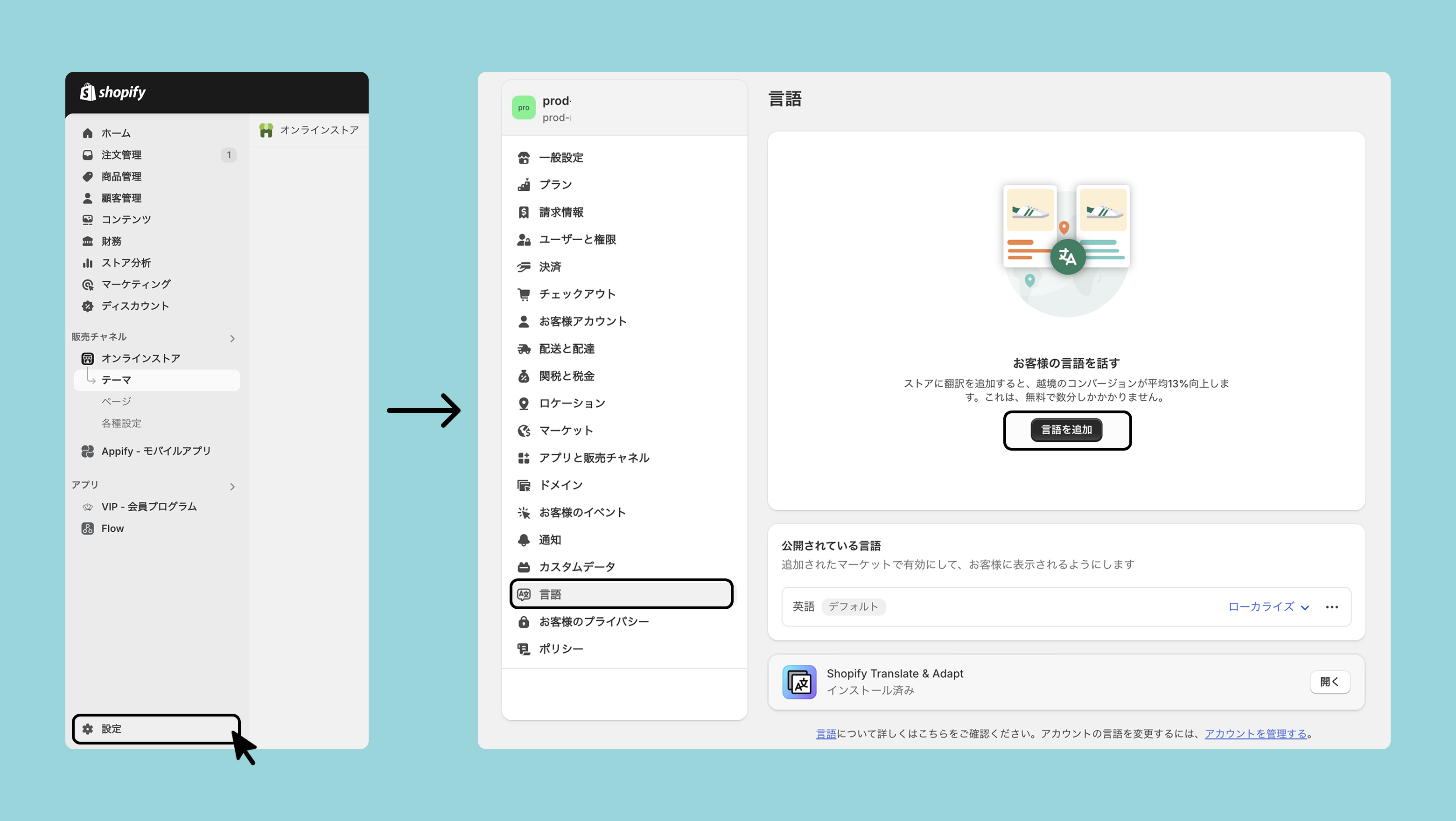本ガイドでは、マーチャントが設定を行う必要のある 「2. Shopifyに登録されている情報の文言」 の翻訳設定方法についてご案内します。