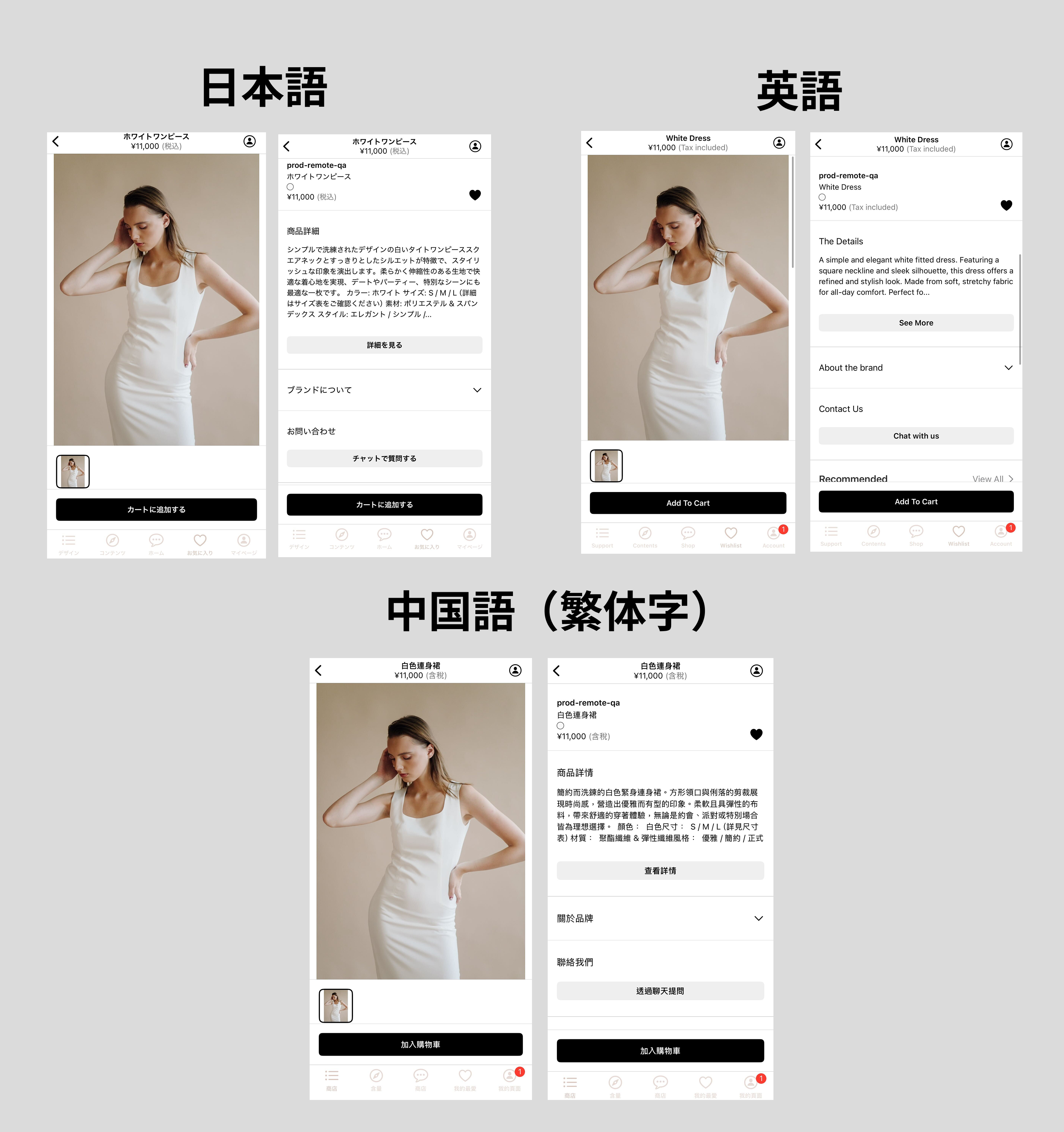 英語の翻訳を追加した場合、お客様の端末設定を「英語」にすると英語の翻訳が表示されます。同様に、台湾語(繁体字)の翻訳を追加した場合は、端末設定を「台湾語(繁体字)」にすると台湾語(繁体字)の翻訳が表示されます。