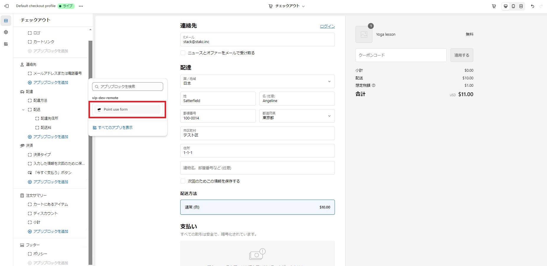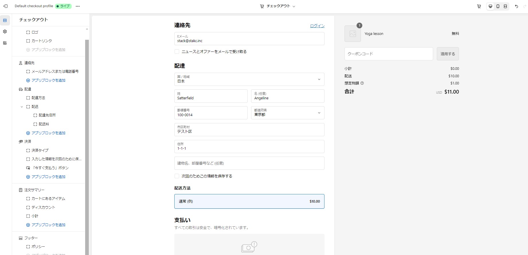チェックアウト画面を開いてください。