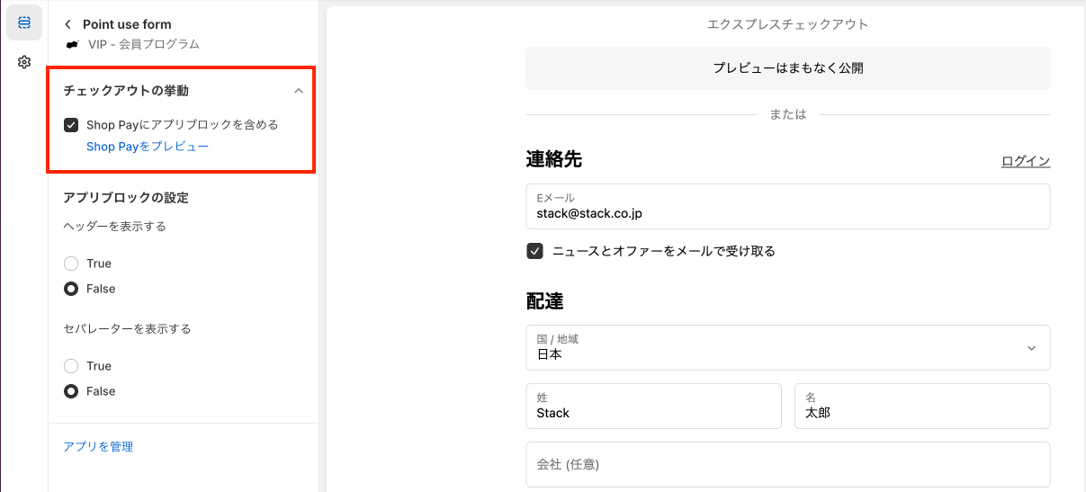 [Shop Payにアプリブロックを含める]にチェックを入れてください。