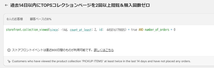 Shopifyの顧客管理から”コレクションページを特定回数閲覧しているユーザー”のセグメントを作成してください。