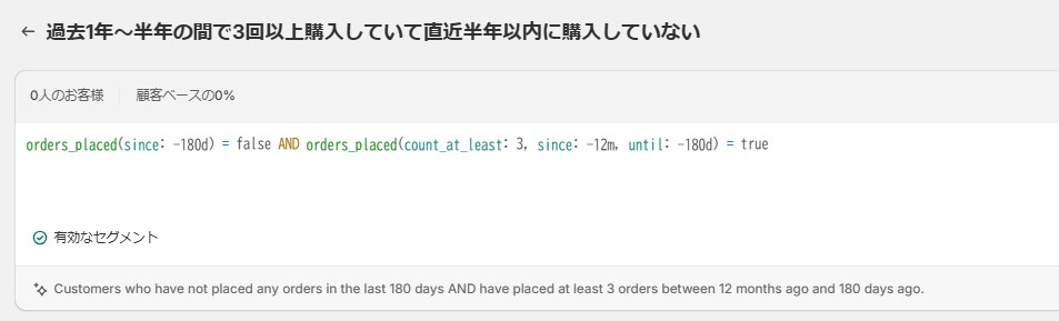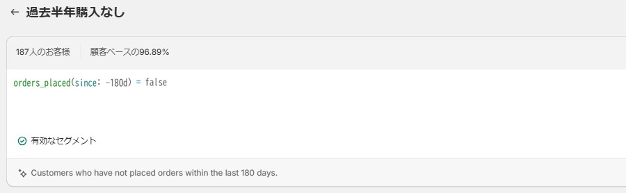 Shopifyの顧客管理から”過去半年未購入”のセグメントを作成してください。