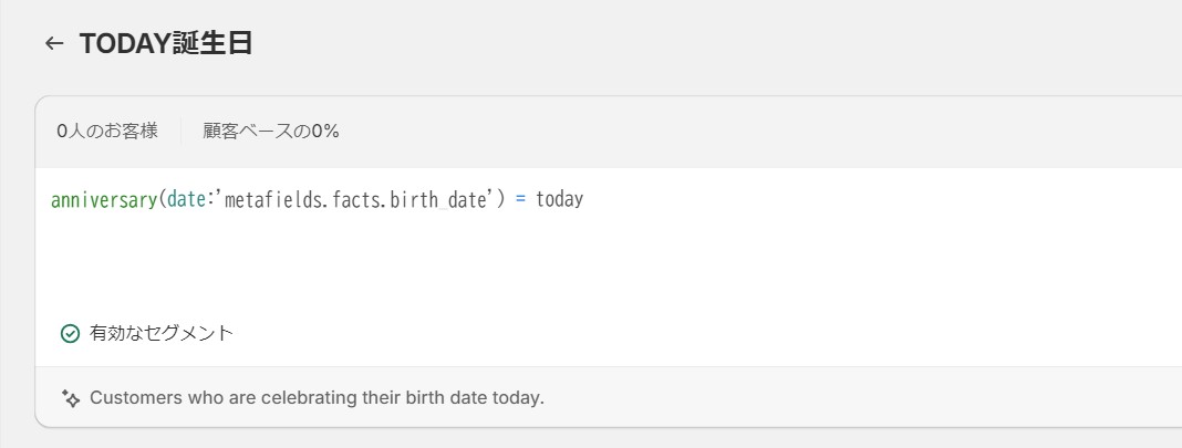 Shopifyの顧客管理から”本日誕生日”のセグメントを作成してください。