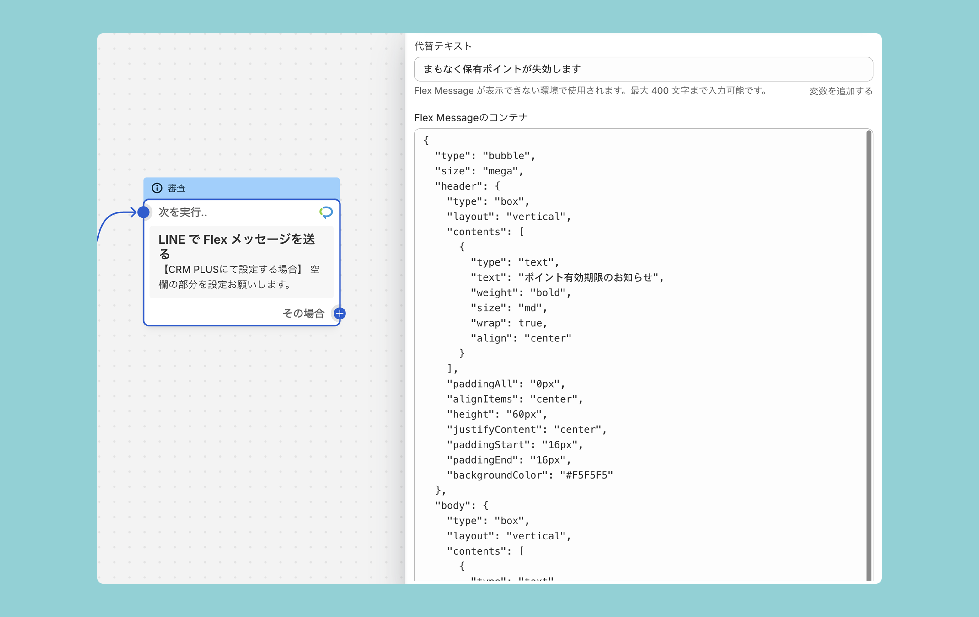 ポイントが失効する何日前に通知をするかExpiresInに日数を入力します。