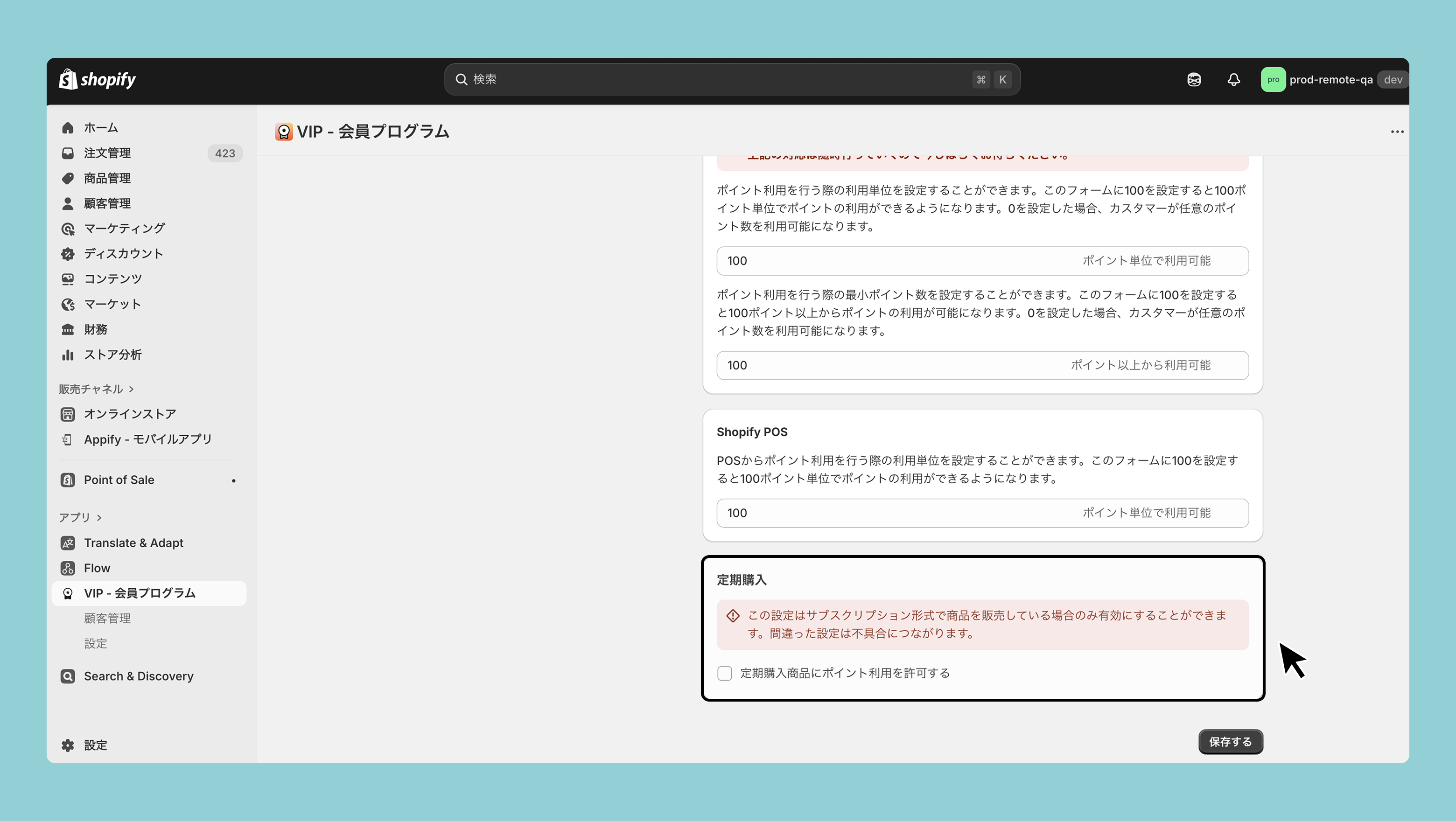 定期購入のポイント設定