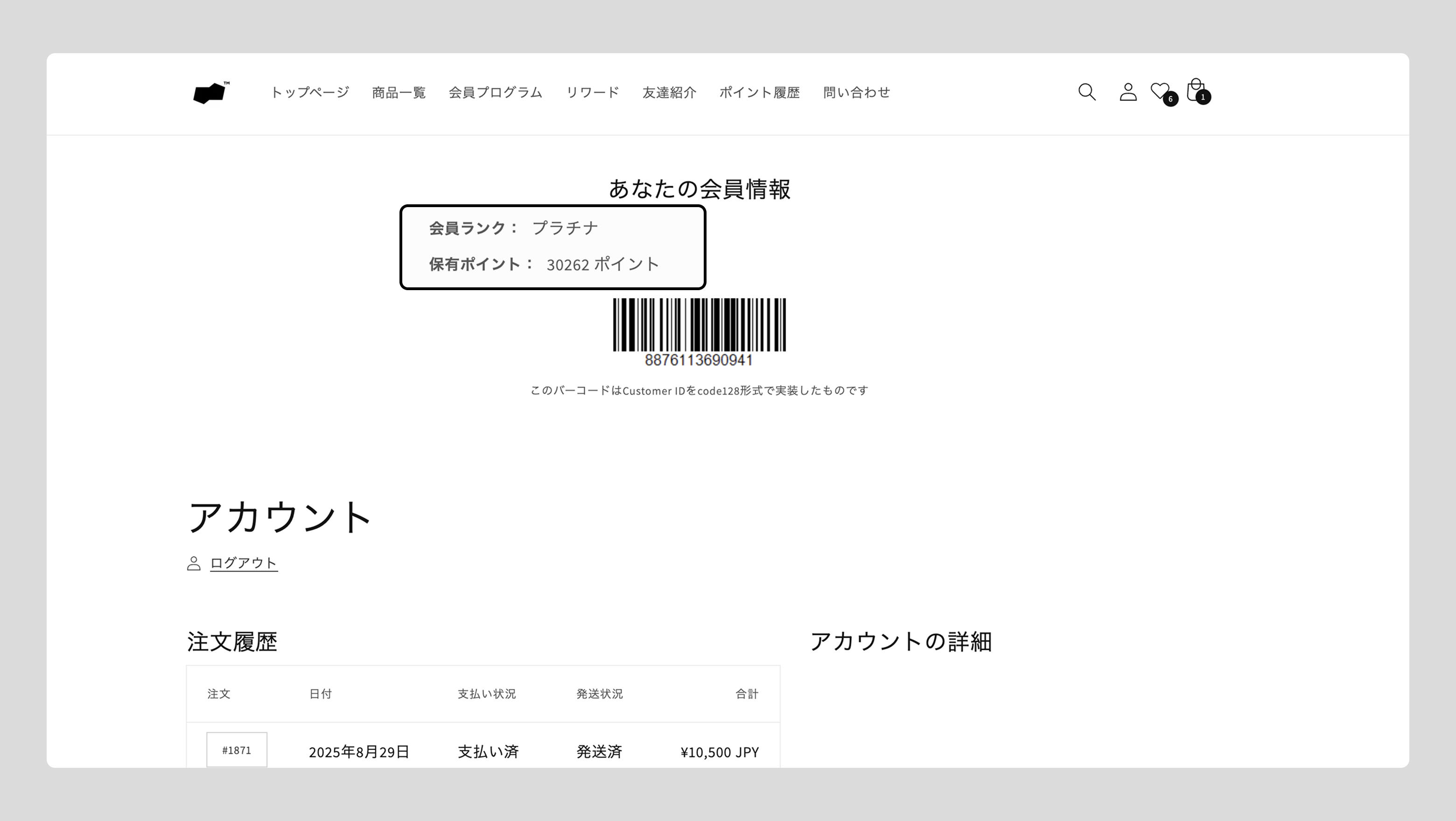 顧客がポイントを使用してリワードを獲得できるように、リワードの一覧ページや交換ページを表示しましょう。