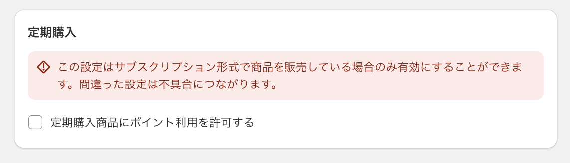 サブスクリプション形式で商品を販売している場合のみ有効にすることができます。間違った設定は不具合につながります。
