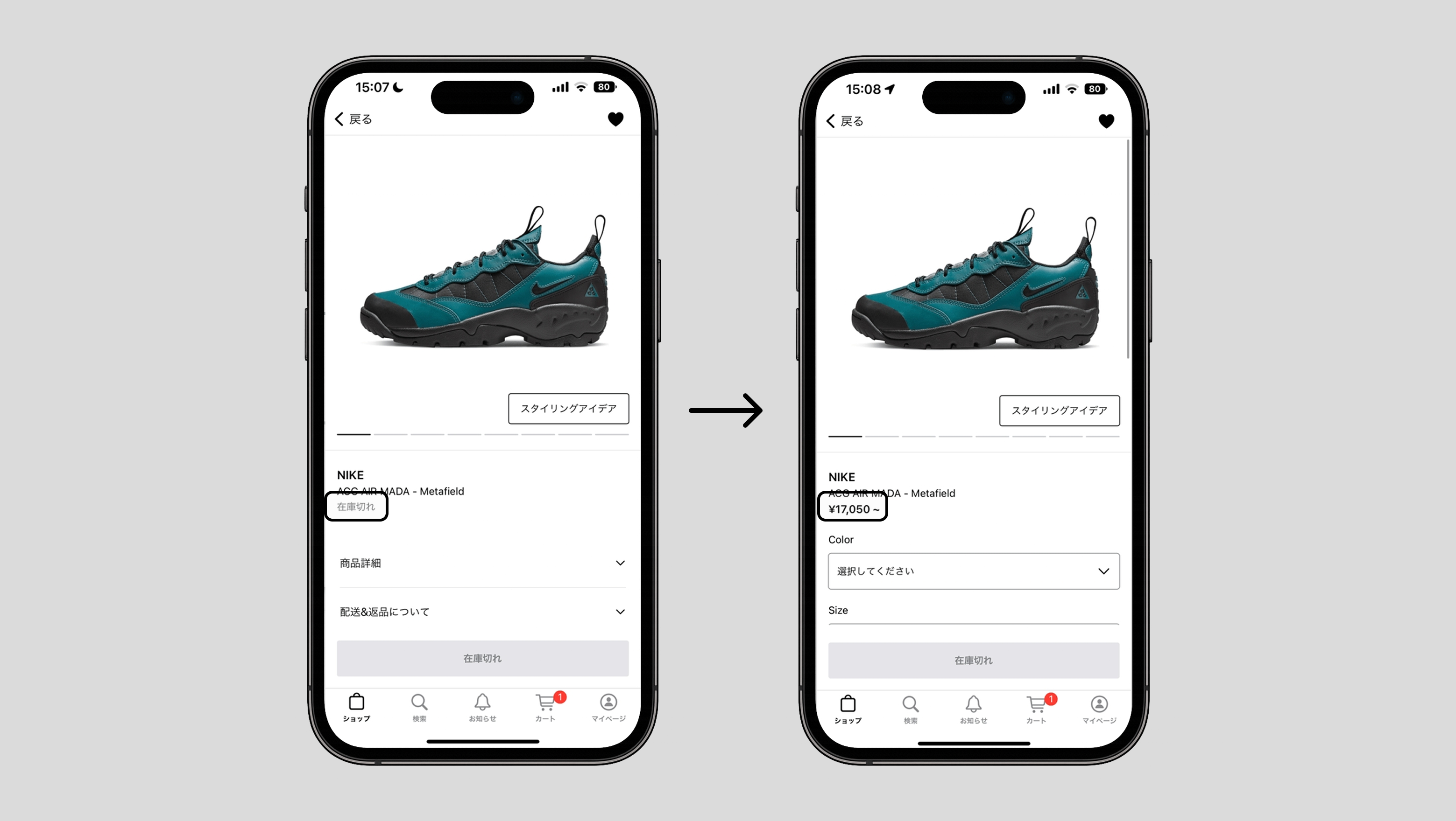 カートに追加するボタンは「Appify:DisableSoldOutUI」タグを実装しても変化しません。販売スケジュールや抽選販売と組み合わせた際には「Coming Soon」や「応募する」ボタンが表示されます。