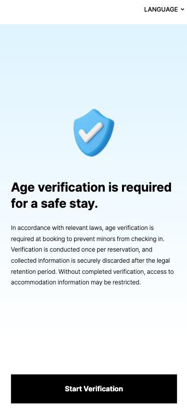 入住前需完成年龄验证(19 岁以上)。若无法完成验证,可能会限制办理入住。