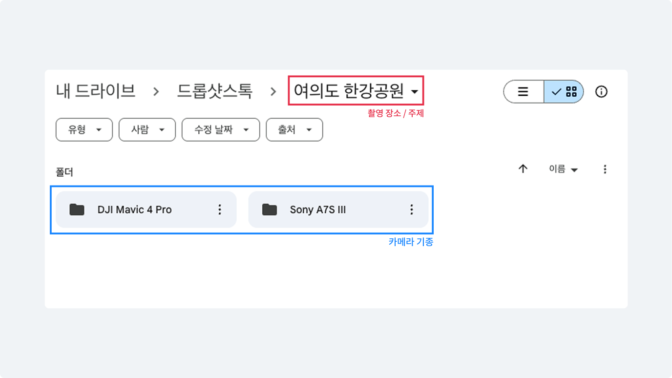 폴더 분류 기준에 맞춰 영상 드라이브에 업로드 하기