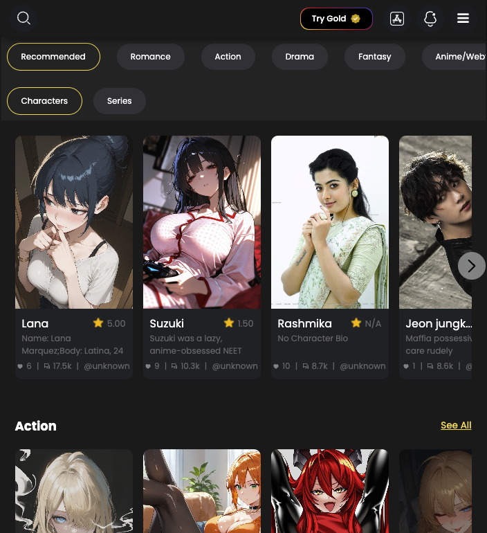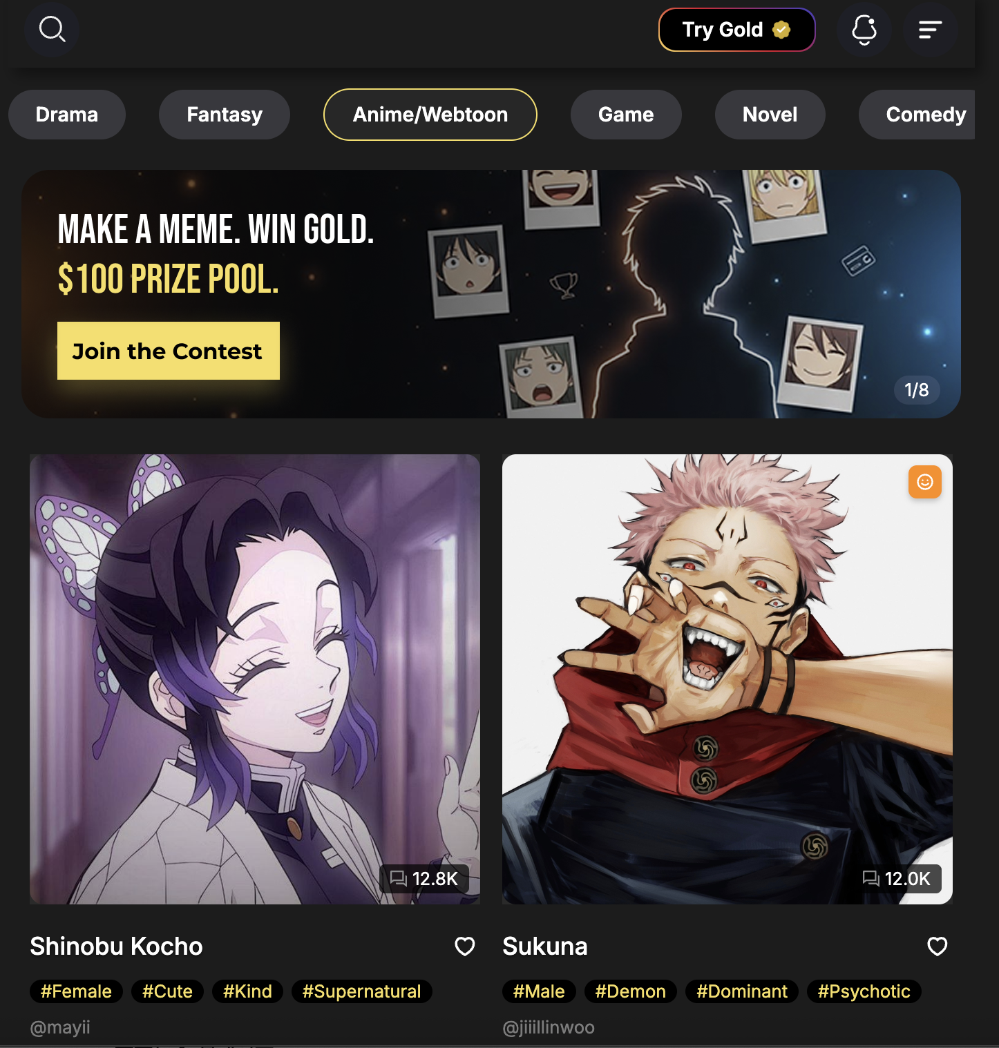 Storychat lets you chat freely with thousands of AI characters created by users around the world.