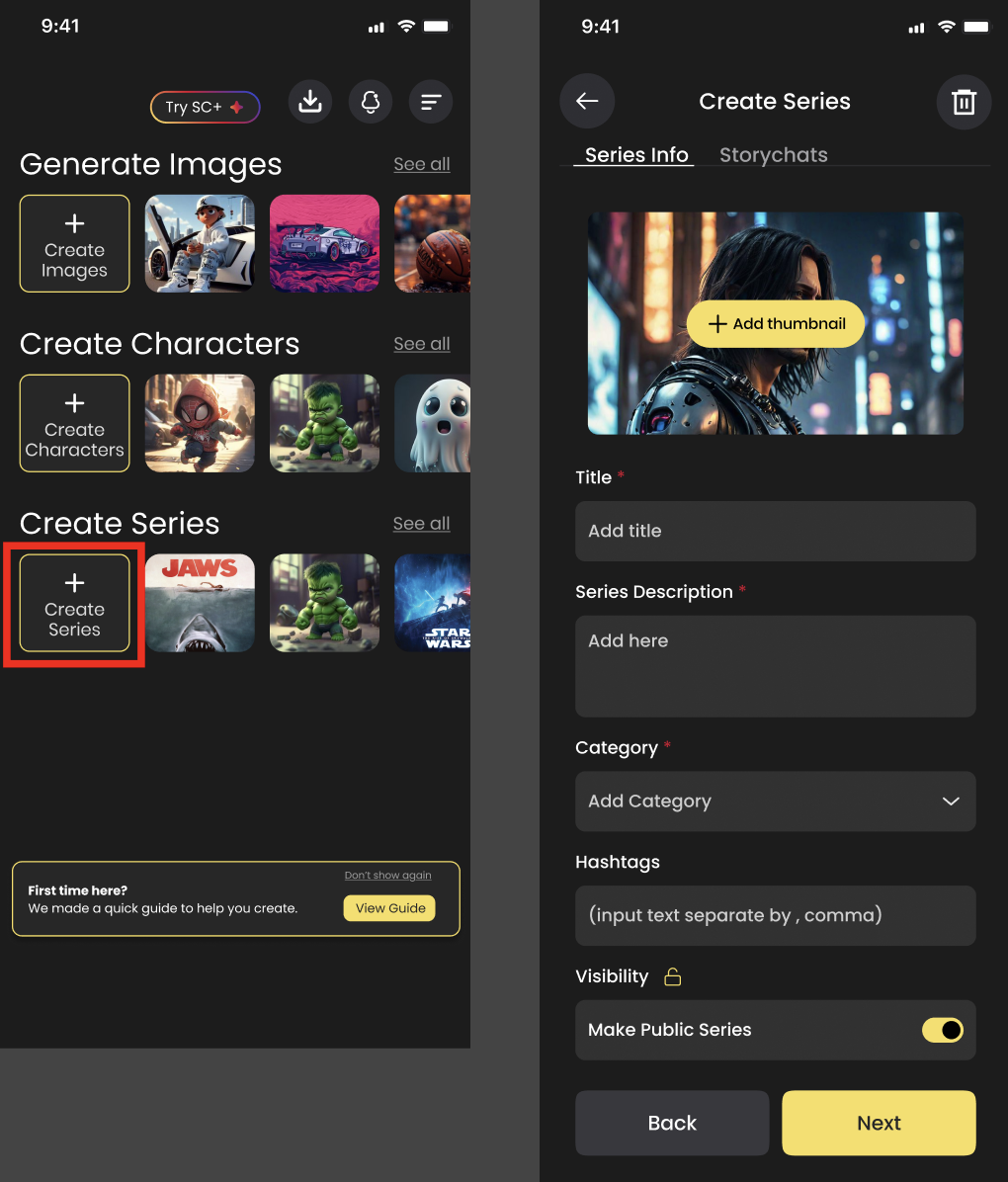 Go to Create → tap Create Series.