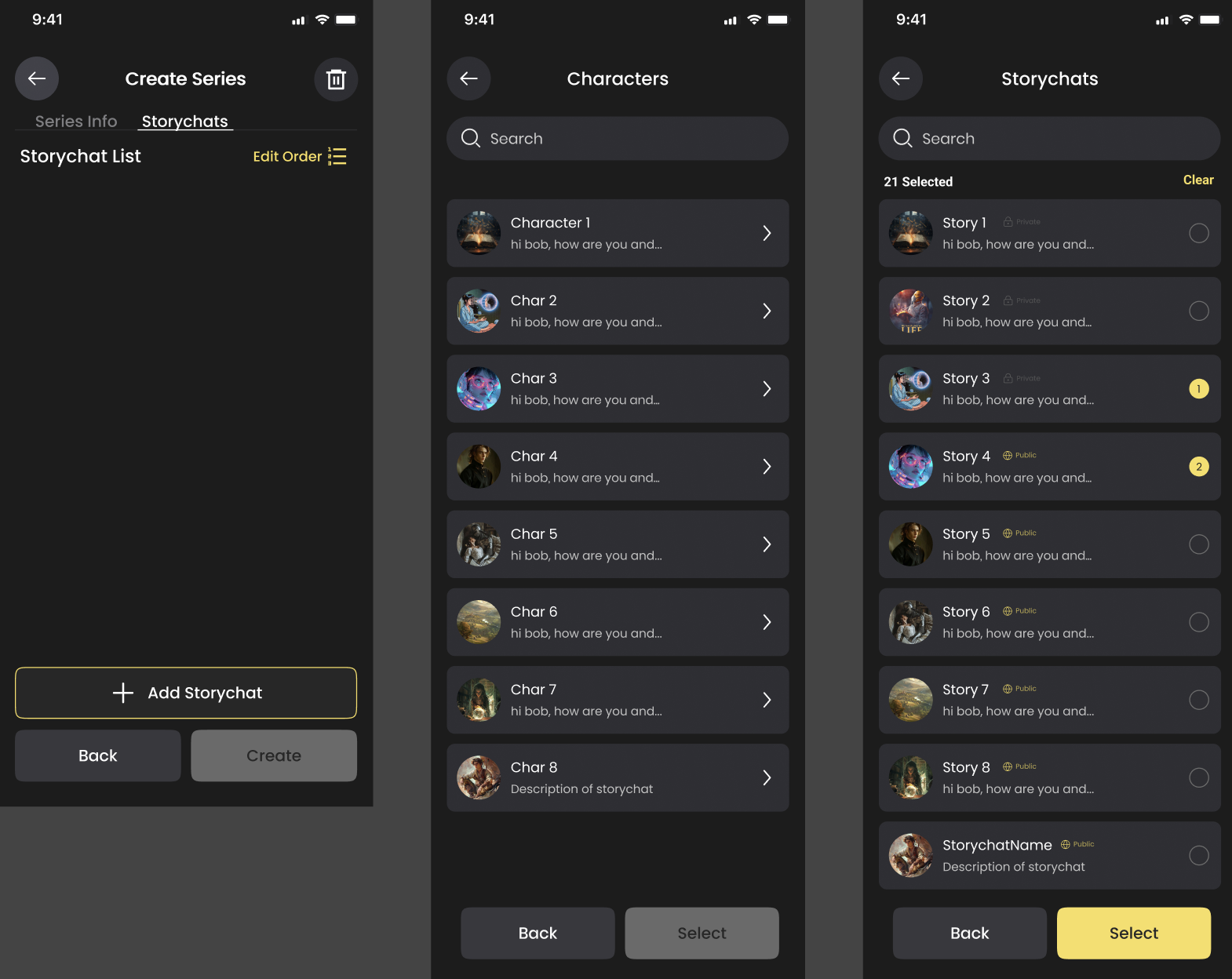 Select one or more Storychats from that Character.