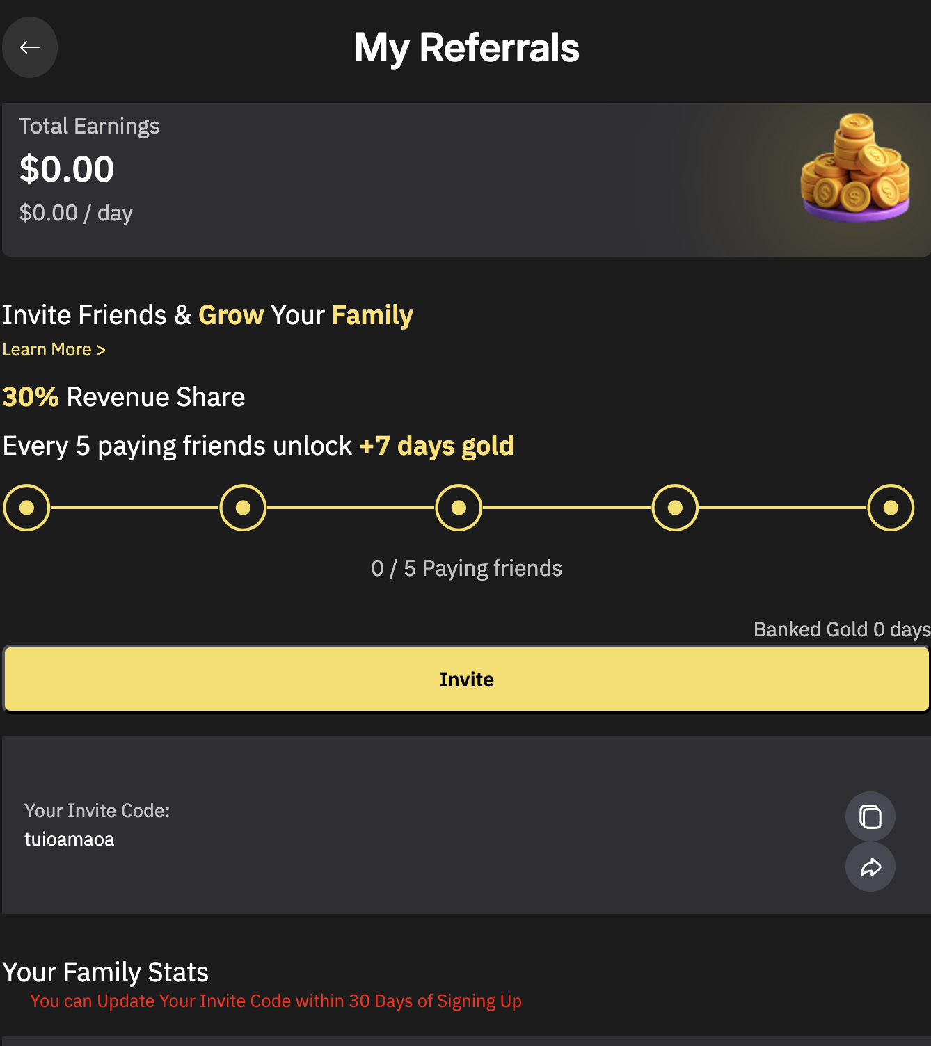 When someone signs up and enters your username as their invite code, they become your Child.