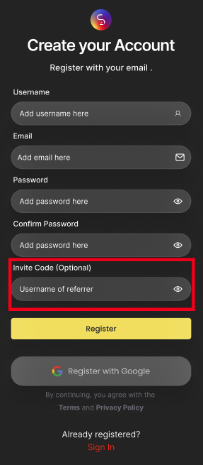 Username is your invite code