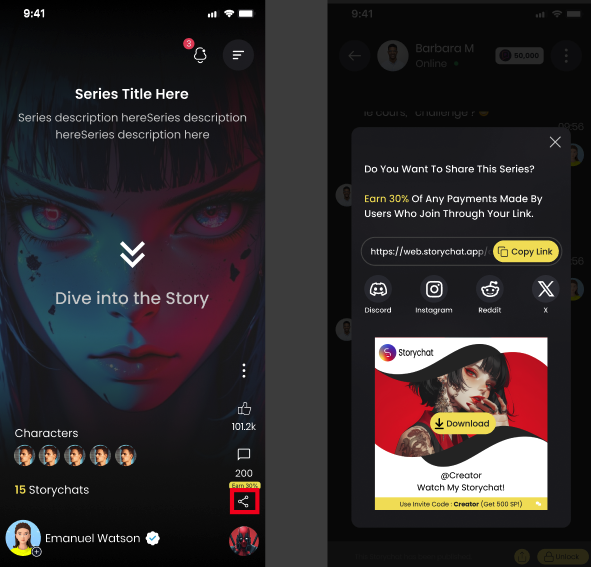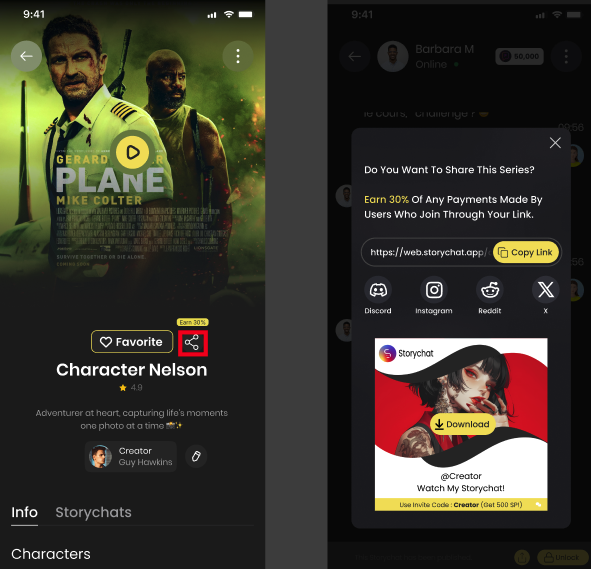 You can even share other creators' characters — you still get the referral earnings!