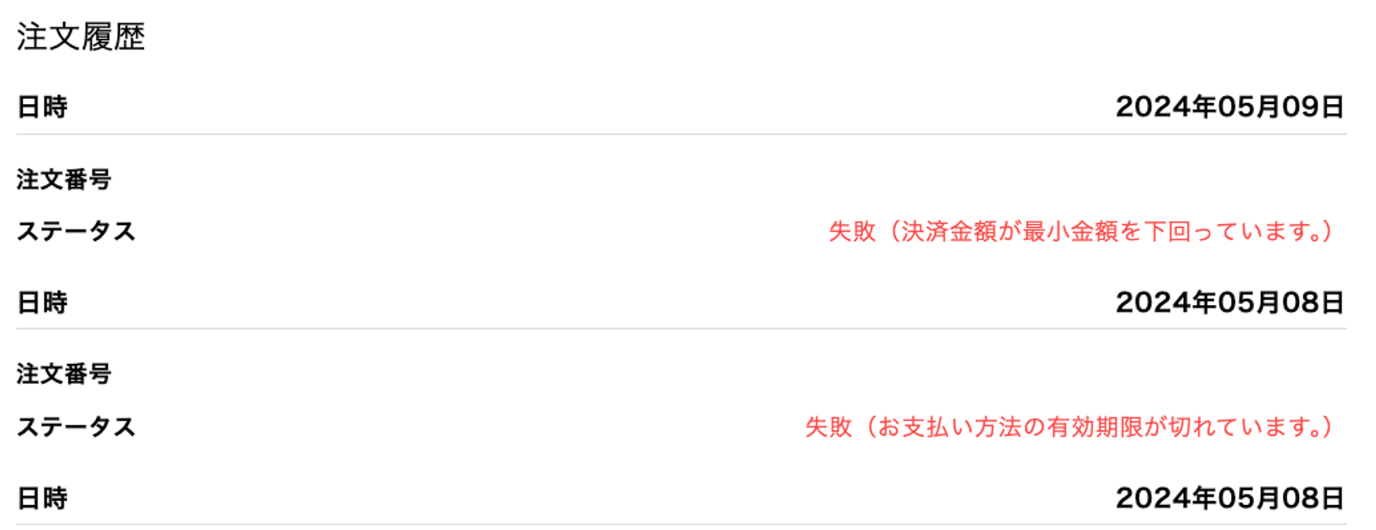6月1日12:06頃 (決済失敗) | アクティブ | |
