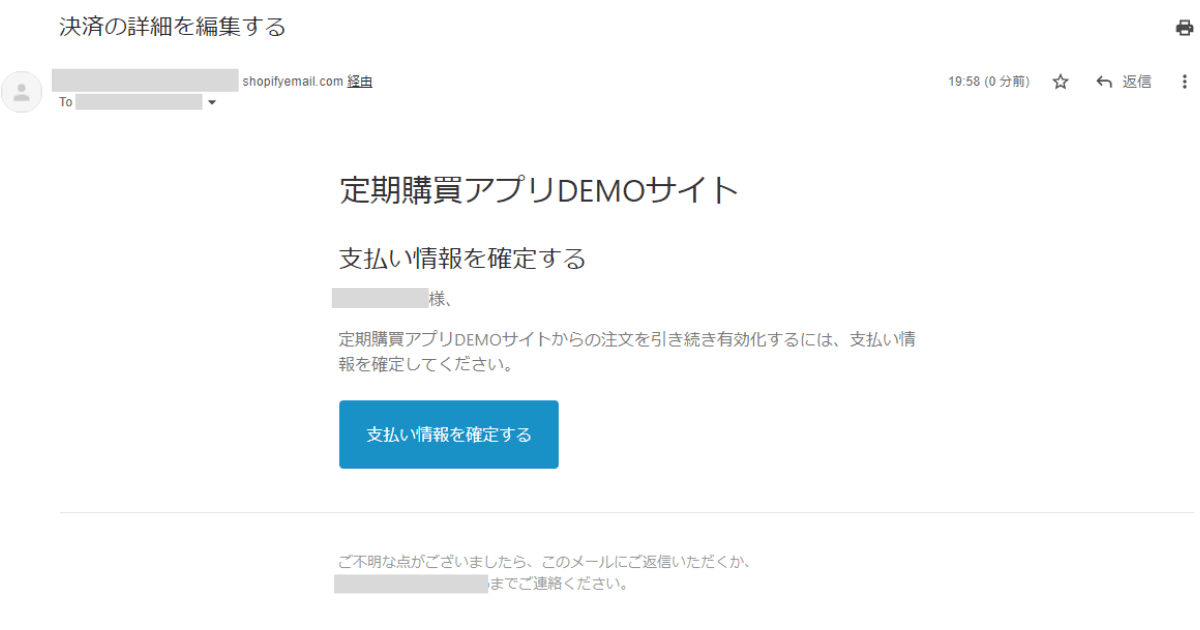 登録されているアドレスへ、決済情報の編集メールが送信されます。