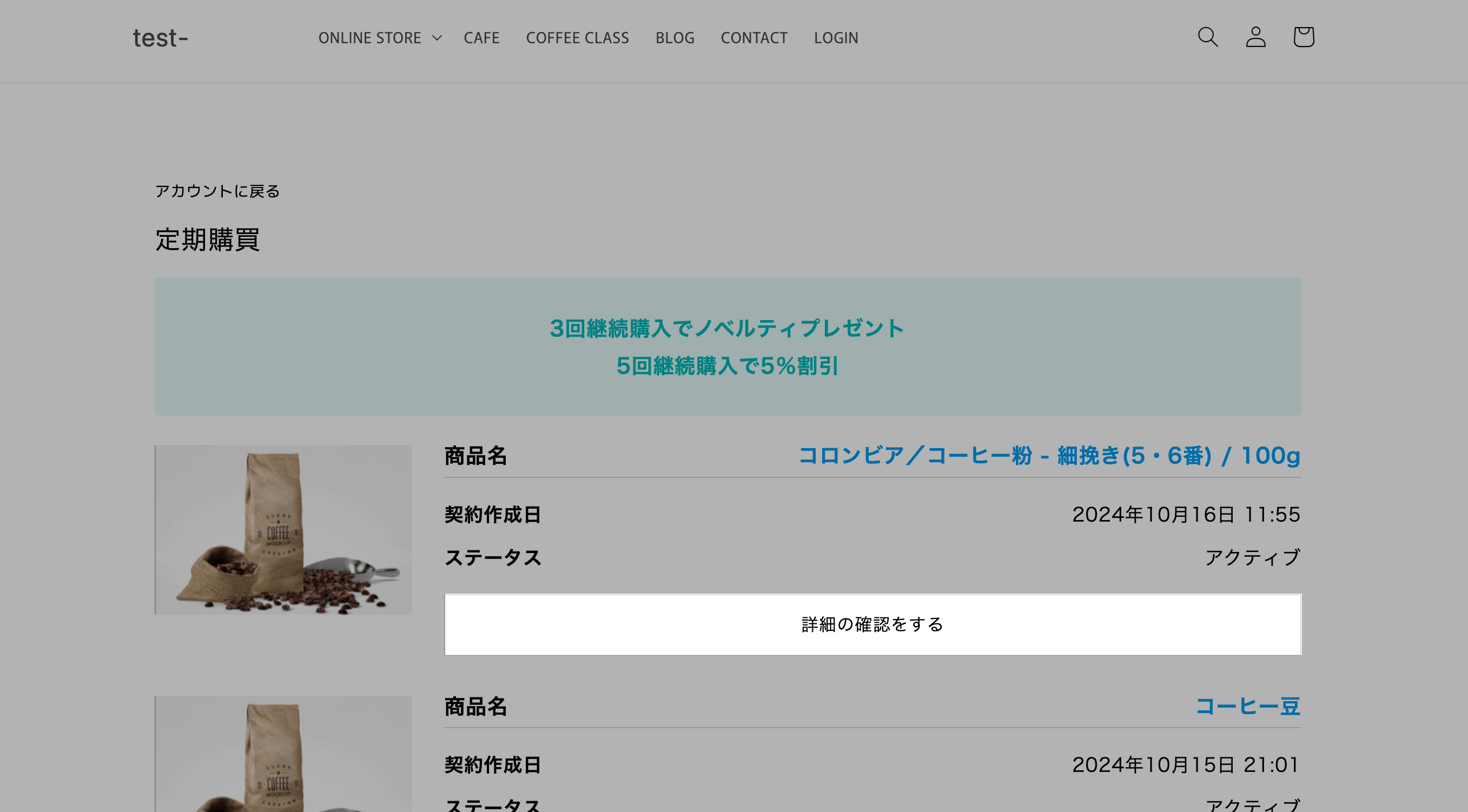 ・3回目の決済失敗後に契約が一時停止状態になり「定期購買の一時停止」の通知が行われます。