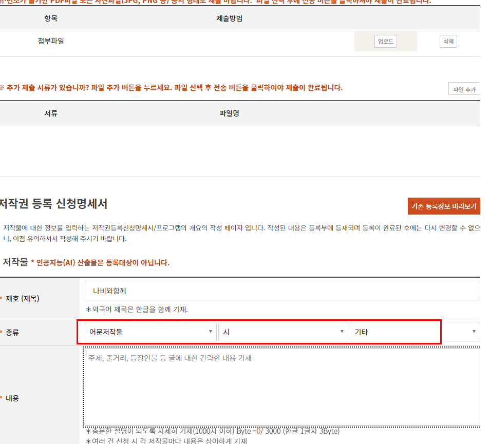 기타 또는 시 등 저작물 내용에 맞게 선택해주세요.