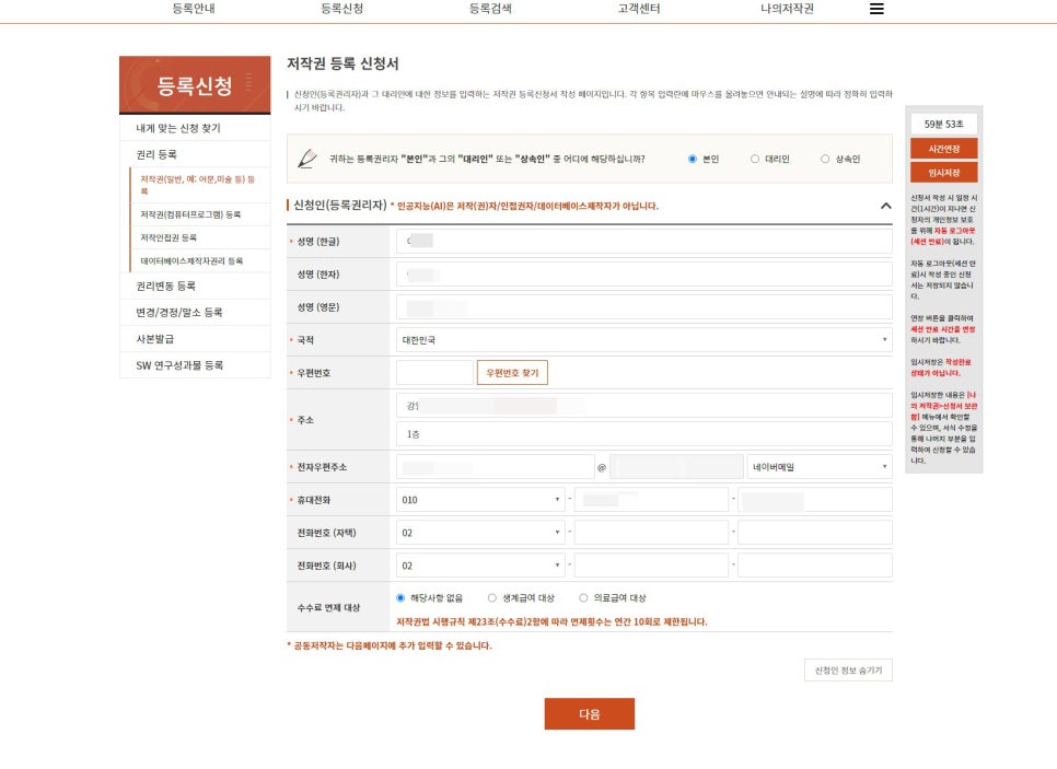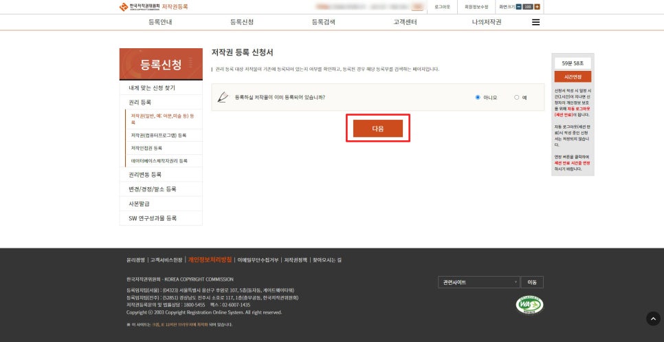 다음으로는 저작권 등록 신청을 위해