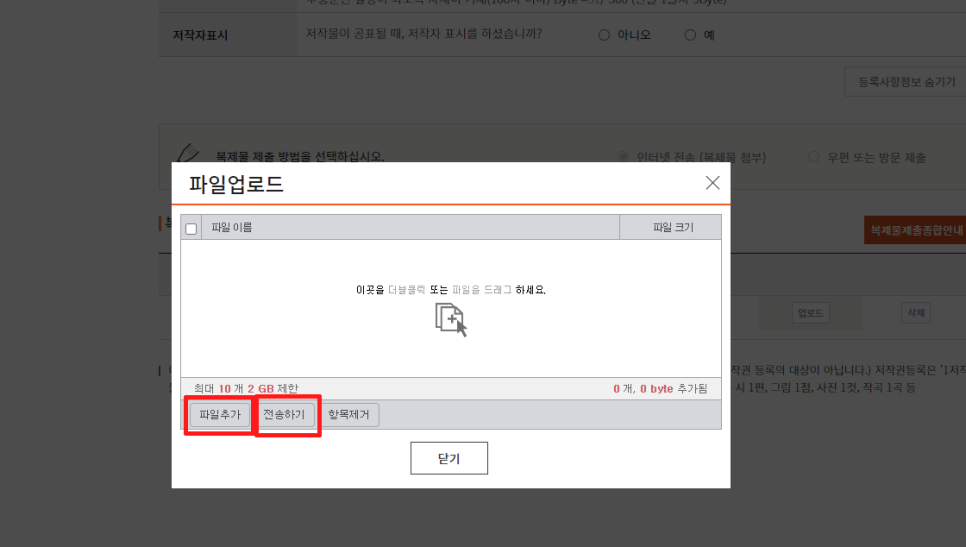 저작권 등록하실려는 파일추가 후 전송하기 진행해주세요.