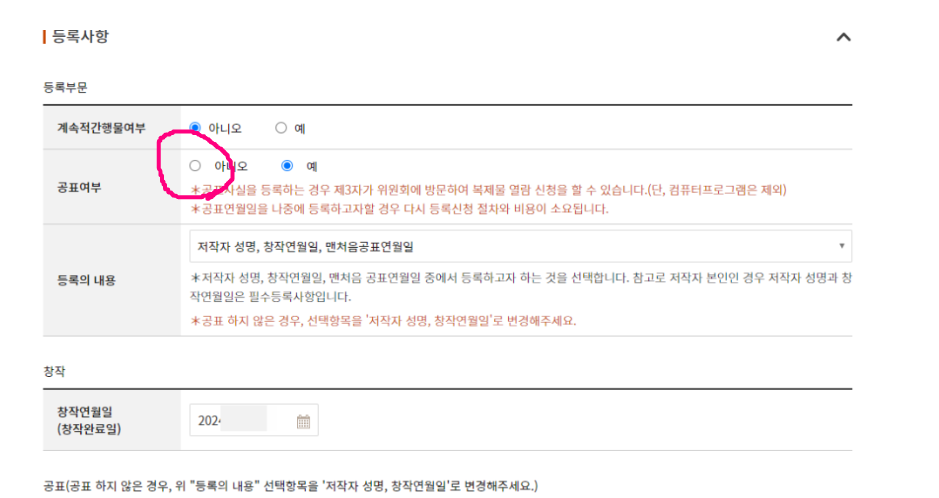 창작연월일만 날짜기입하시면 됩니다.