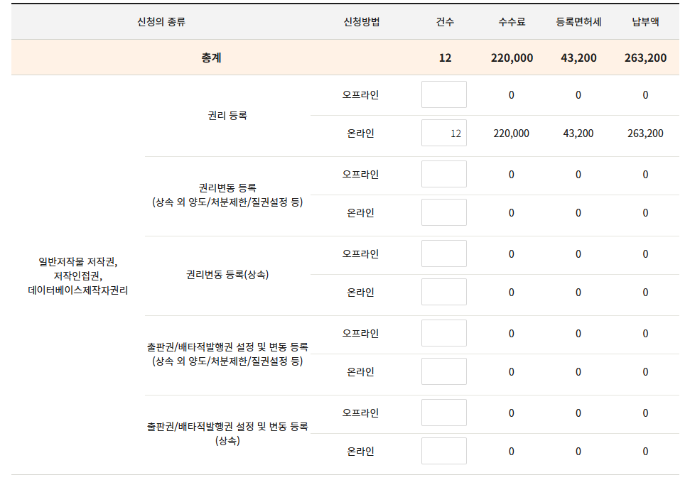 ■ 전달드린 모든 저작물을 15개(15번) 등록 신청을 한 후에 한번에 결제해야 할인됩니다.