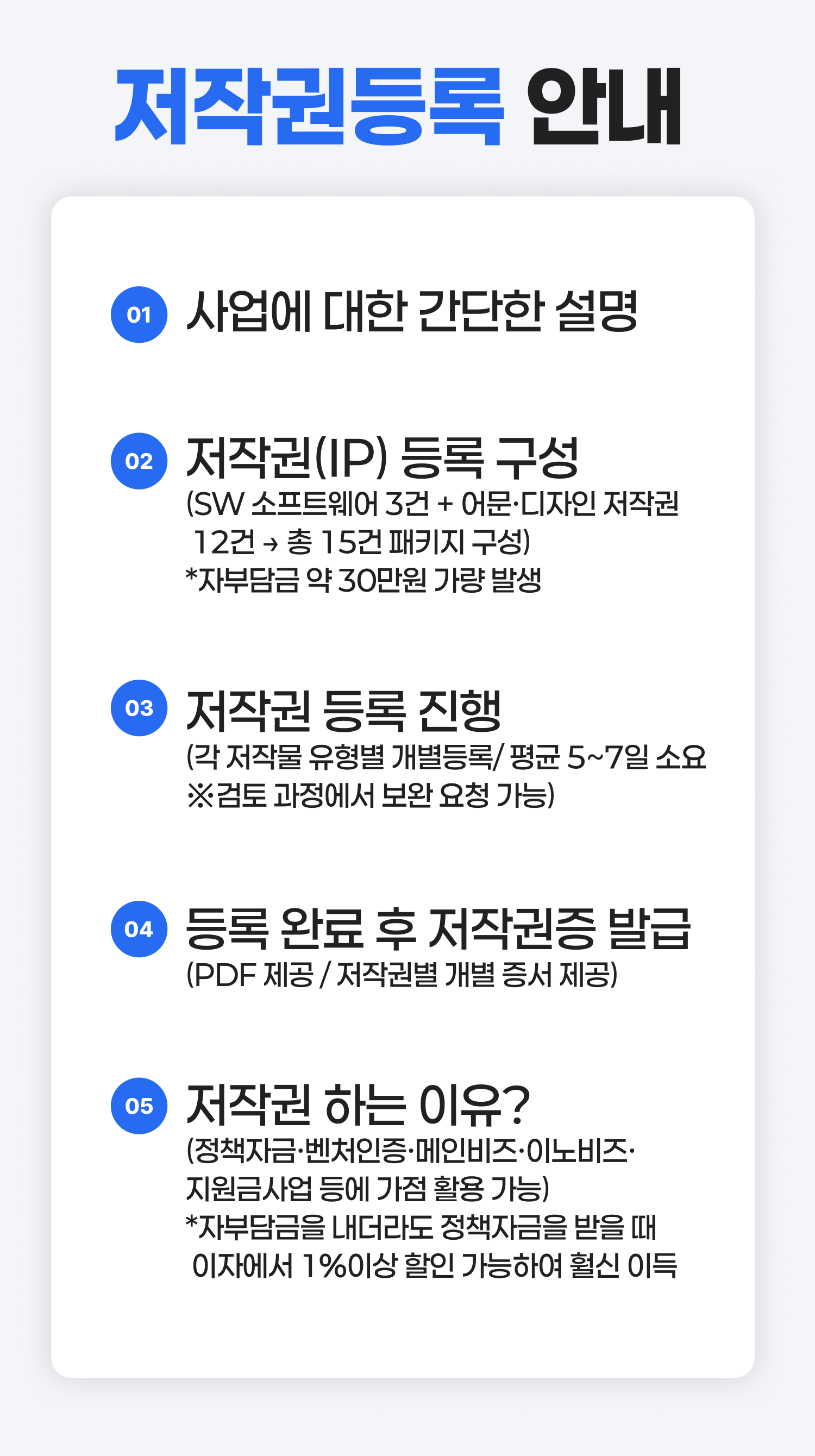 ■ 전달드린 모든 저작물 15개를 모드 등록신청 후 한번에 결제야 할인됩니다