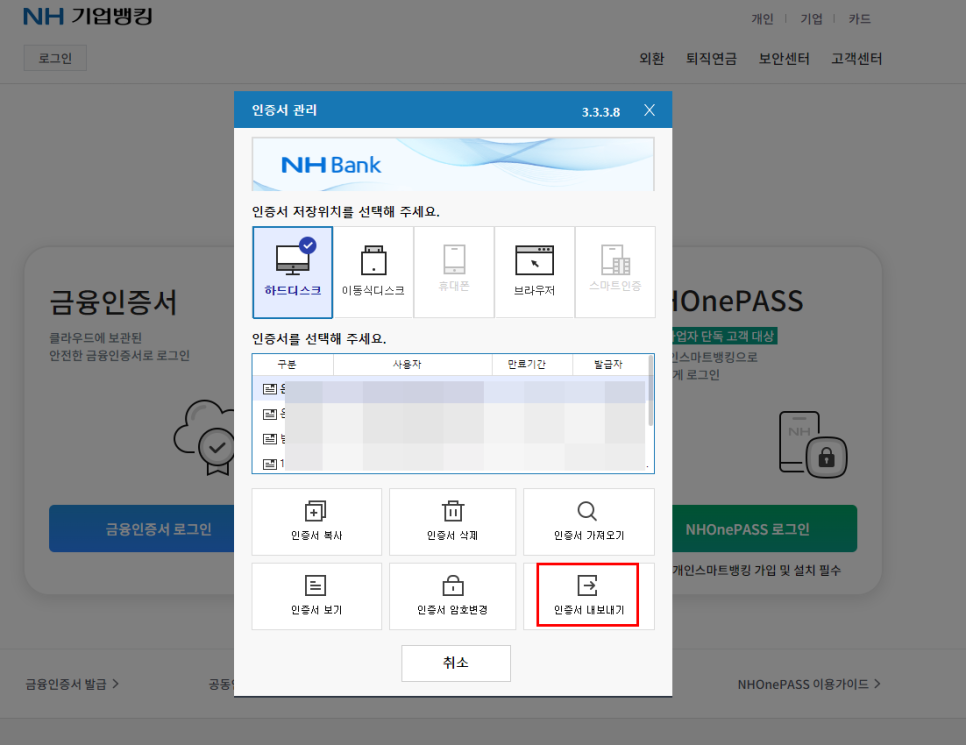 공동인증서 바탕화면 내보내기 방법