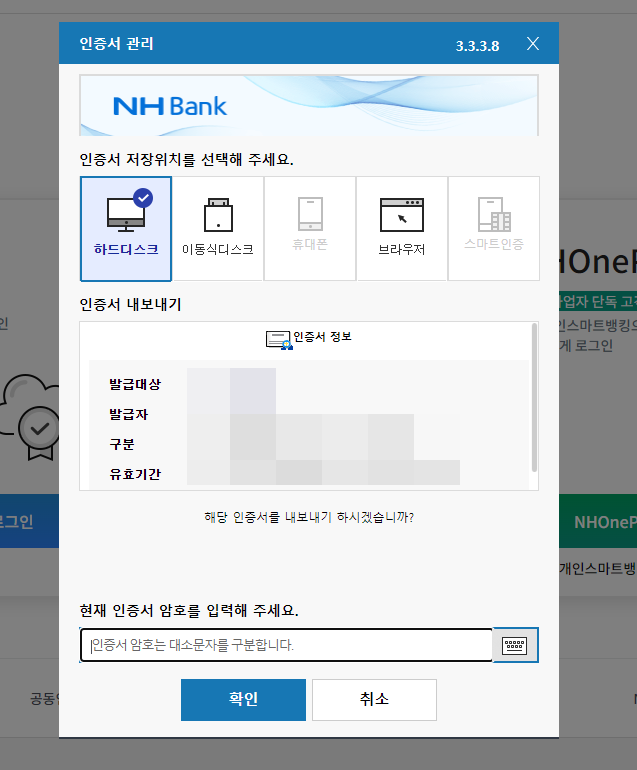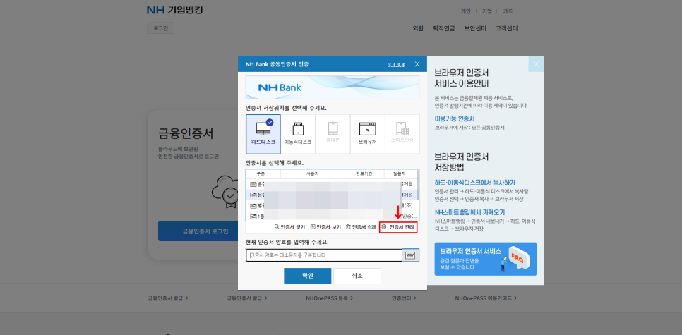 인증서 암호 입력해주세요.