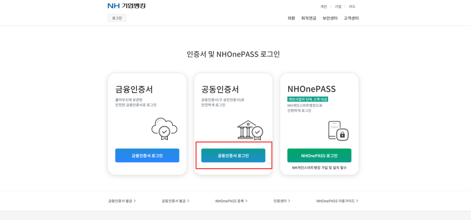 공동인증서 로그인 선택