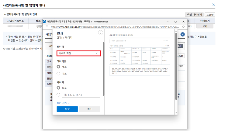 인쇄 및 PDF 저장