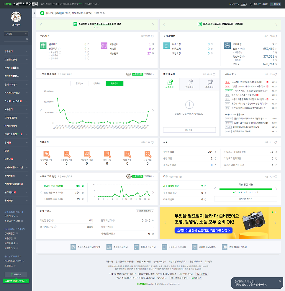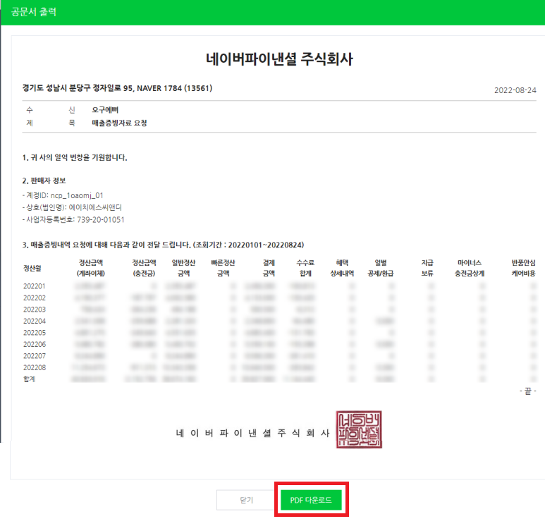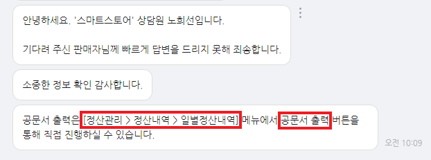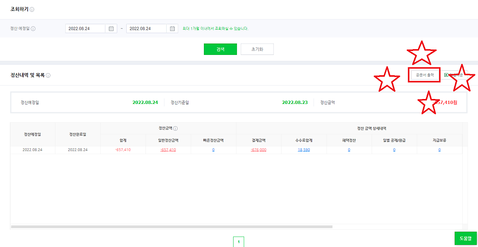 이후 매출 확인 또는 정산 내역 조회를 진행하실 수 있습니다.