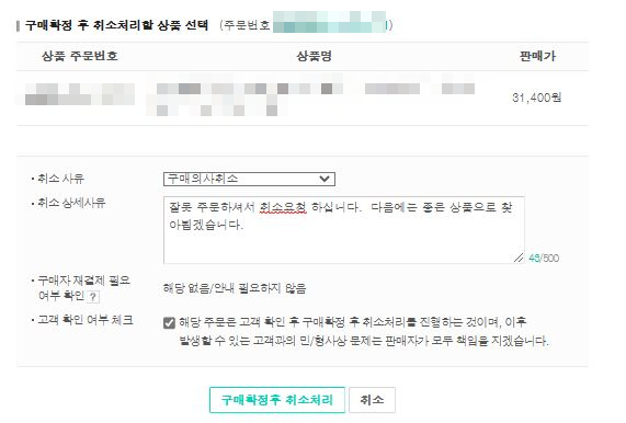 구매확정 후 취소하기를 실행하시면