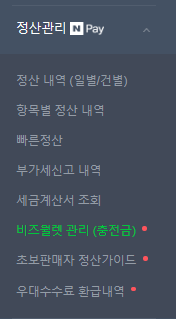 정산관리 → 비즈월렛 관리(충전금)클릭