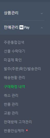 판매관리 →구매확정 내역 클릭