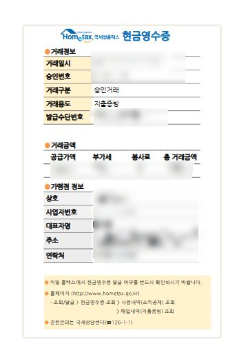 안내받아 홈택스에서 현금영수증처리를