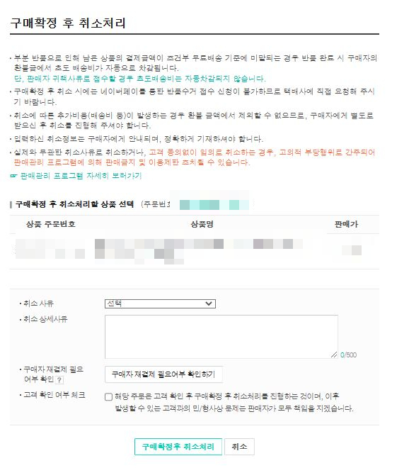 네이버 스마트스토어센터 구매확정 후 취소하는방법