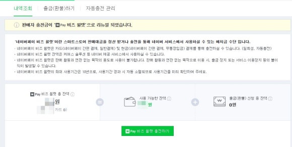 비즈월렛(구 충전금)에 금액이 있어야