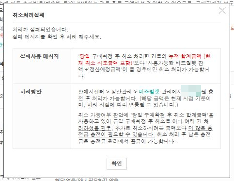 취소처리가 실패되었습니다.