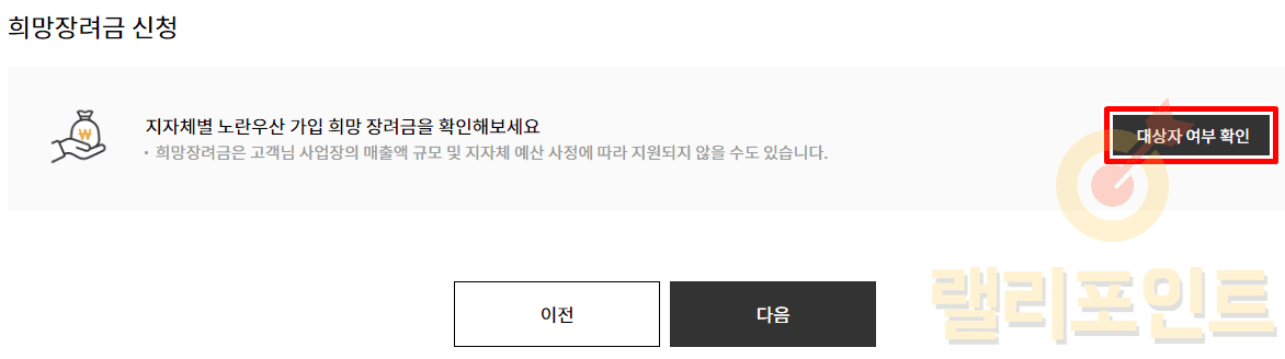 15. 희망장려금 신청에서 대상자 여부 확인을 클릭합니다.